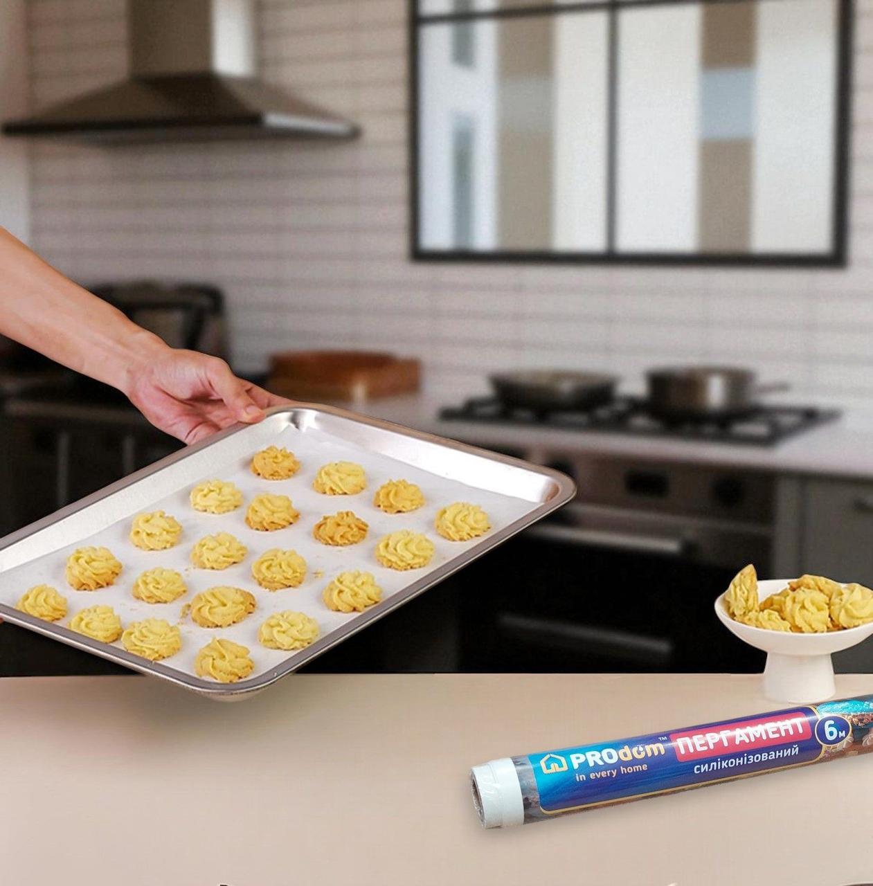 - Пергамент оброблений двома шарами харчового силікону, завдяки яким папір не прилипає до тіста і форми;